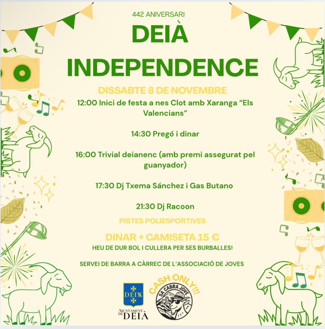 Dissabte 8 de novembre celebrarem el 442 aniversari de Deià, i ho farem amb goig patriòtic i càntics d'alabança!