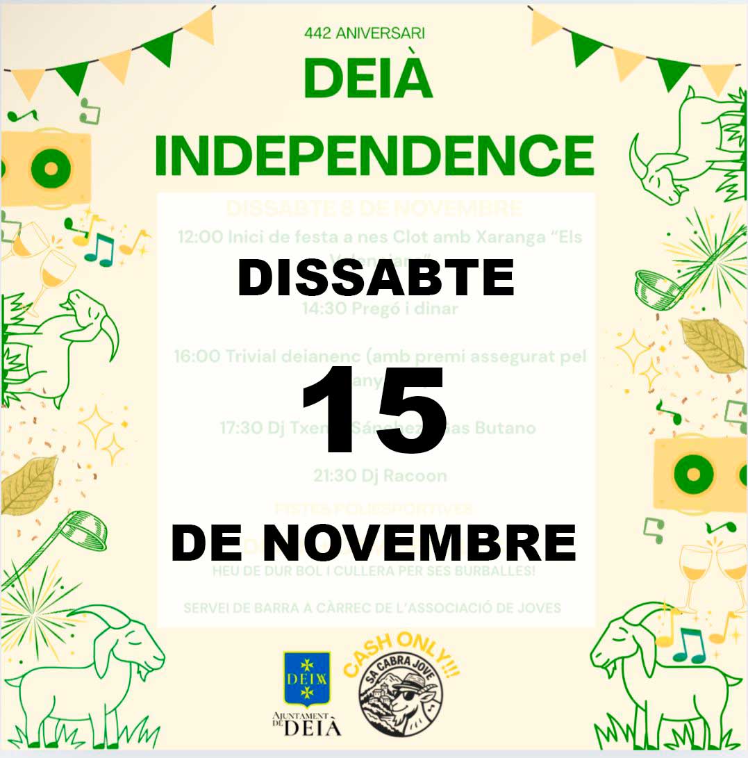 El proper dissabte 15 de novembre celebrarem finalment el 442 aniversari de Deià, després d’haver hagut de cancel·lar la festa i tornar a fer que tot quadri per a una altra data.