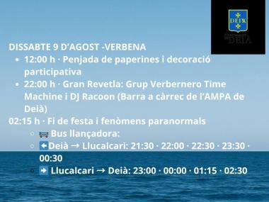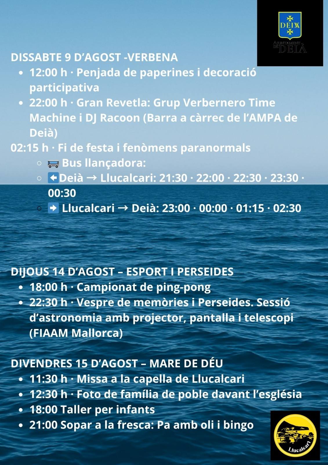 Esperam que gaudiu del programa que hem preparat entre la Comissió de Festes de Llucalcari i l'Ajuntament de Deià, amb el seny i la bauxa que ens caracteritza com a poble.